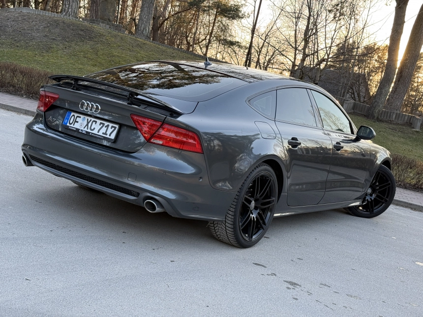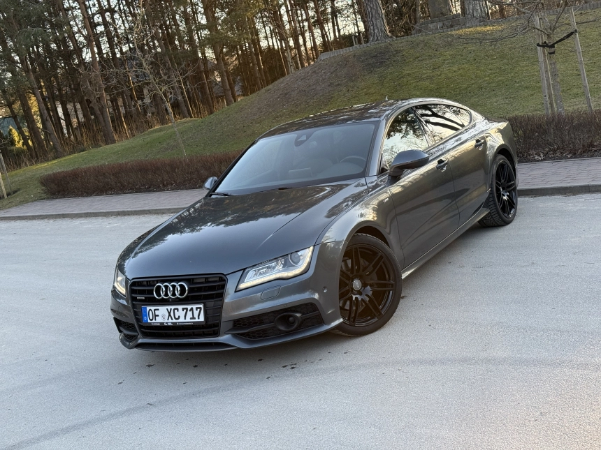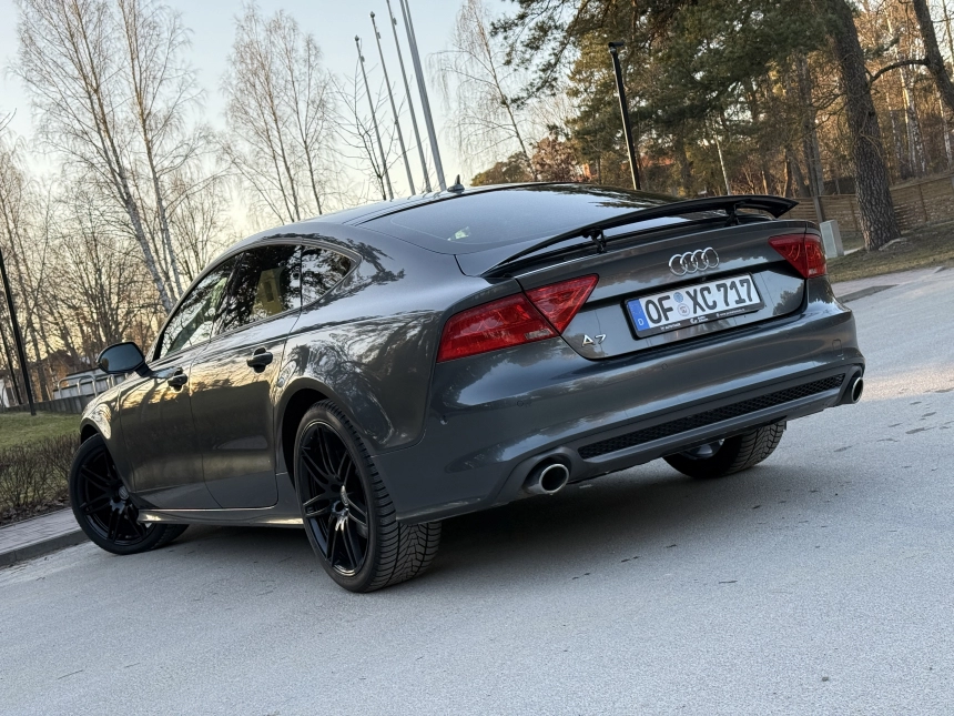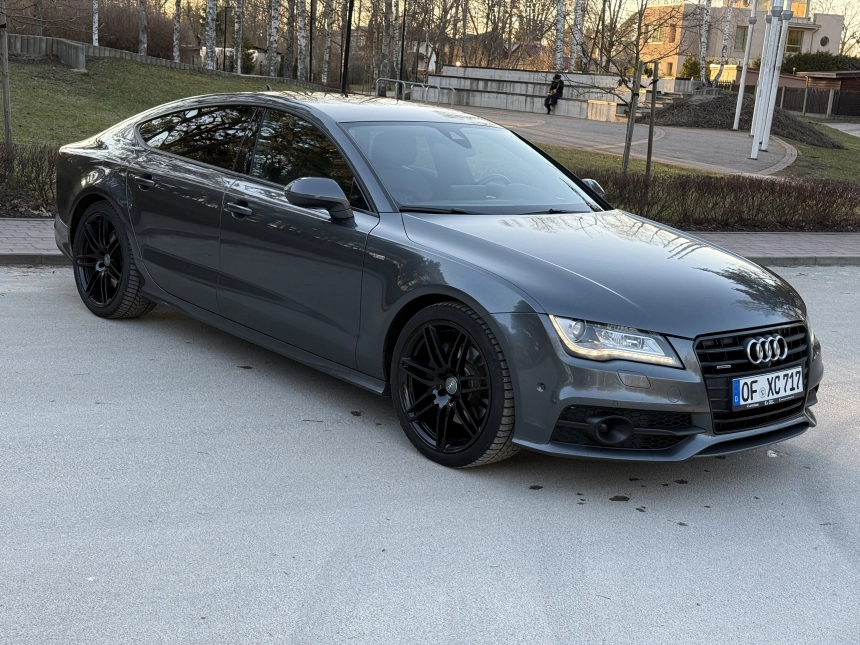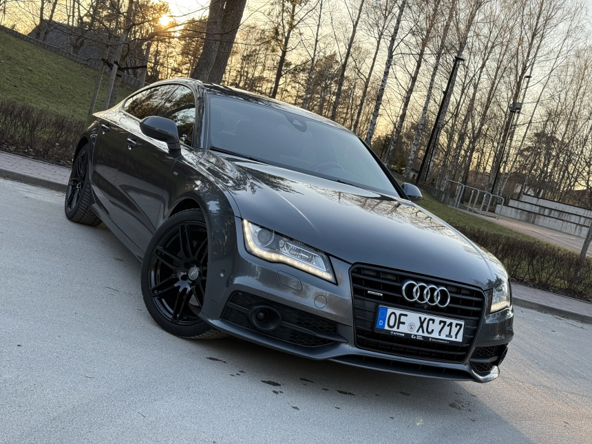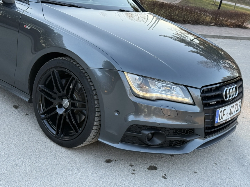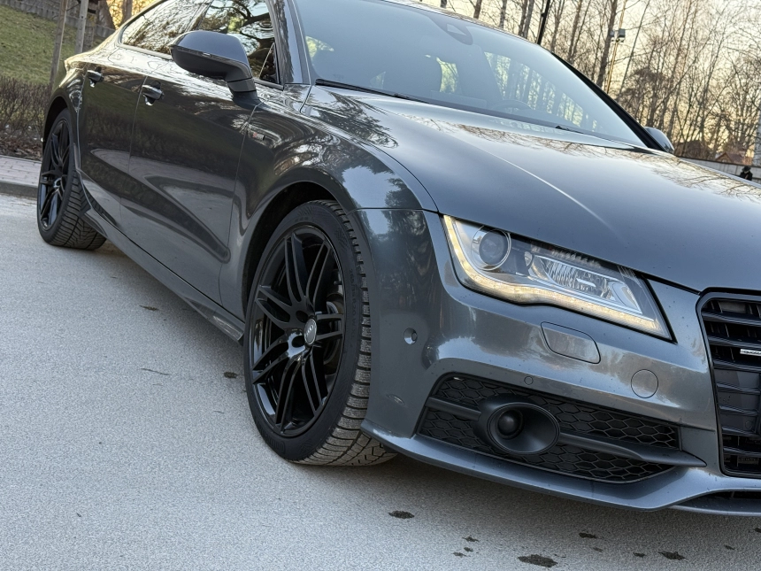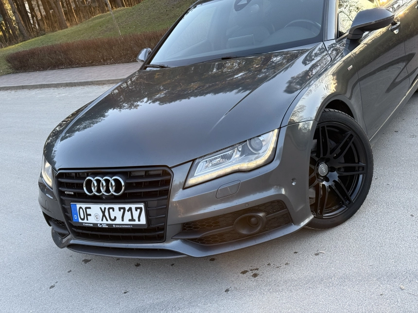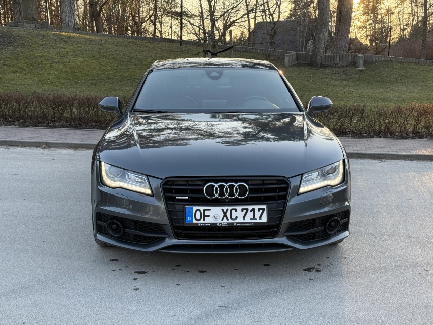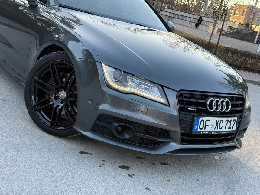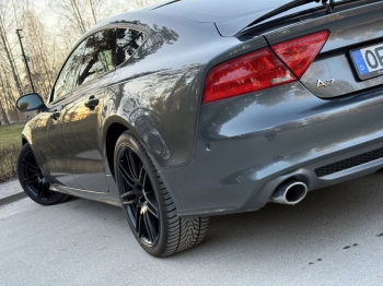 Pardodu Audi A7 S-LINE Quattro ar 3.0Tdi-180Kw motoru. 8 autrumi!!! Mašina tiko atzita. Latvija nav braukta. Pilna servisa apkope Audi centrā. Ļoti akurāts auto. Pilna komplektacija. Stereo sistema BOSE. Individualais Recaro adas salons ar apsildi un atmiņu. Melnie griesti. Xenon. KeyLess Go. Distronik. Liniju asistents. Aklas zonas asistents. Parkošanas asistents. Kruizkontrole. 4 zonu Klimatkontrole. Atpakaļgaitas kamera. Priekša kamera. Individuala salona apdare. Lietie diski R20. Praktiski jaunas riepas. Ļoti laba komplektācija. Navigacija. Dubultie logi. Autonoma apsilde. Elektriskais bagažnieks. Elektriskais Sakabes akis.